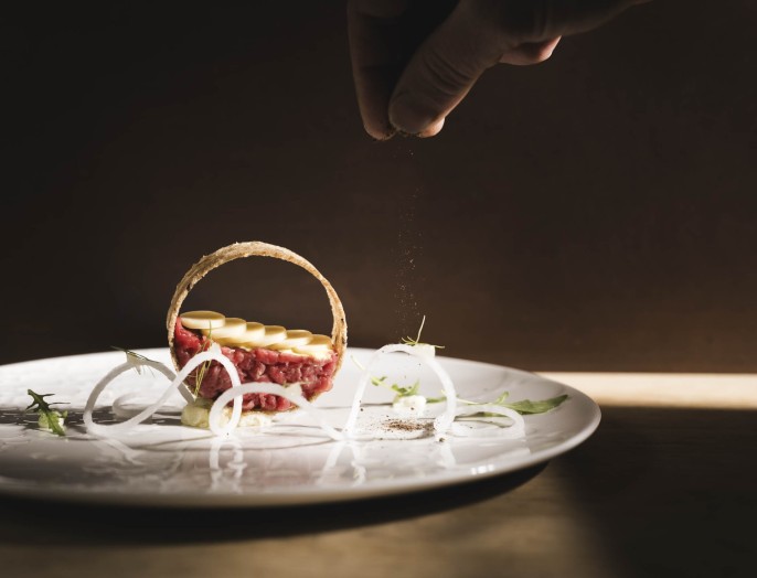 „Ich präsentiere Zutaten so authentisch wie möglich und setze auf Regionalität, Nachhaltigkeit und Saisonalität. Wo es sinnvoll ist, ergänze ich regionale Produkte mit ausgewählten Zutaten aus aller Welt. Gäste erleben diesen Purismus in klaren Kombinationen, die eine Hommage an die Natur sind.“